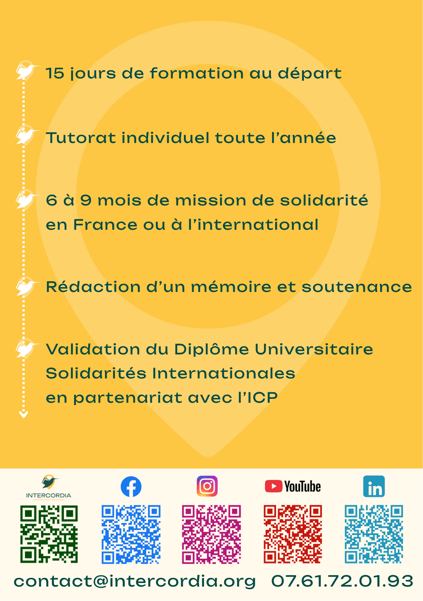 Partir avec Intercordia, c'est bénéficier d’une formation mission humanitaire de qualité. C’est également pouvoir acquérir au retour de sa mission un diplôme de solidarité internationale après avoir rédigé un mémoire sur son expérience vécue.