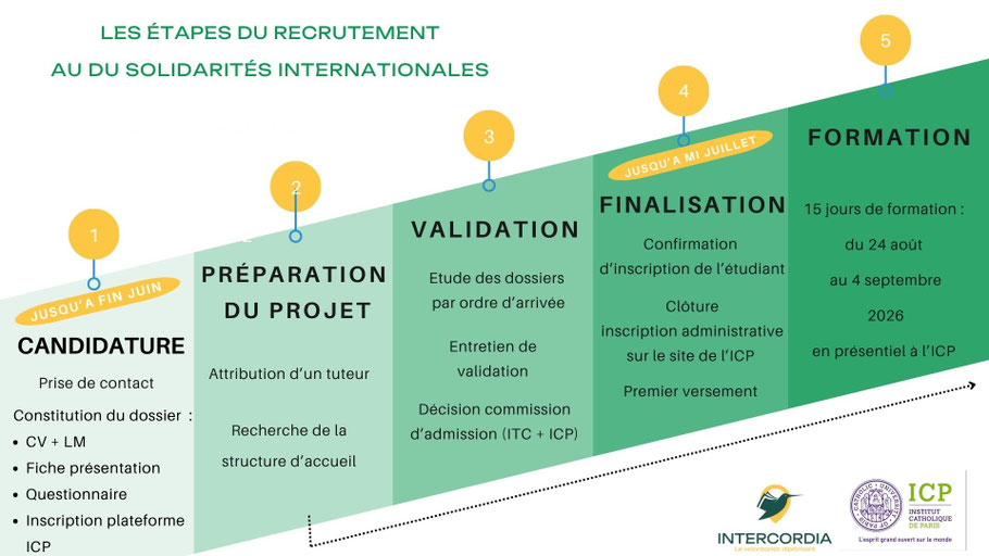 Dossier de candidature à envoyer dès le mois de janvier et au plus tard fin juin à contact@intercordia.org .